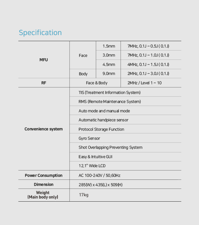 - High synergy effect of MFU & RF even though Economical modelBuild and apply various programs through combination treatment